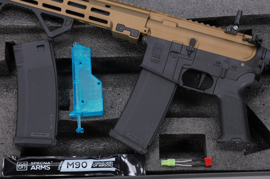 Mots-clés : Specna Arms, SA-E22, EDGE Gen2, HAL2 ETU, M-LOK, système ESA, gearbox AETHER, Specna Link, Chaos Bronze, carabine airsoft, prise DEANS